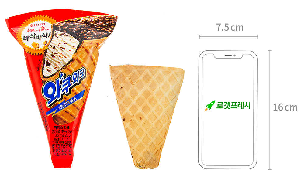 구체적으로 와쿠와크의 구조를 살펴보면, 외부는 바삭한 콘과자로 이루어져 있어 콘 아이스크림의 식감을 제공하면서도, 내부 구조는 모나카처럼 아이스크림을 안전하게 감싸는 형태로 되어 있습니다. 이러한 이중 구조는 먹는 과정에서 아이스크림의 흘러내림을 방지하면서도 바삭한 식감을 지속적으로 제공할 수 있게 해줍니다. 특히 콘과자 내부에 코팅된 초콜릿은 아이스크림과 과자 사이의 경계를 자연스럽게 연결해주는 역할을 하여, 전체적인 맛의 조화를 이루는 데 중요한 기능을 합니다.