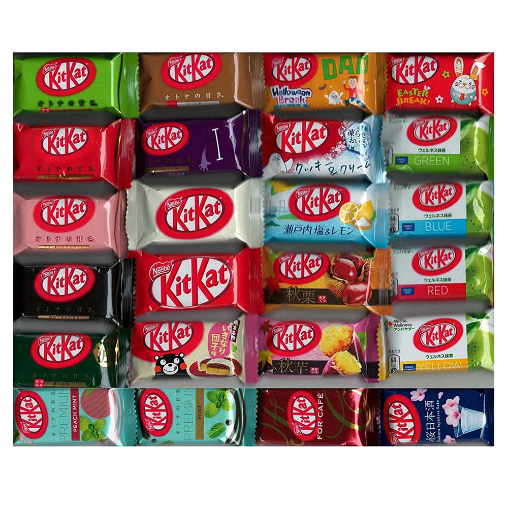 일본에서는 현재 30가지가 넘는 다양한 맛의 킷캣이 판매되고 있으며, 지금까지 출시되었던 맛을 합하면 300가지가 넘습니다[2]. 킷캣의 맛 종류는 2015년 기준 206가지에 달하며, 사실상 지구상에 존재하는 실현 가능한 맛 대부분이 상품화되었다고 해도 무방합니다[1].